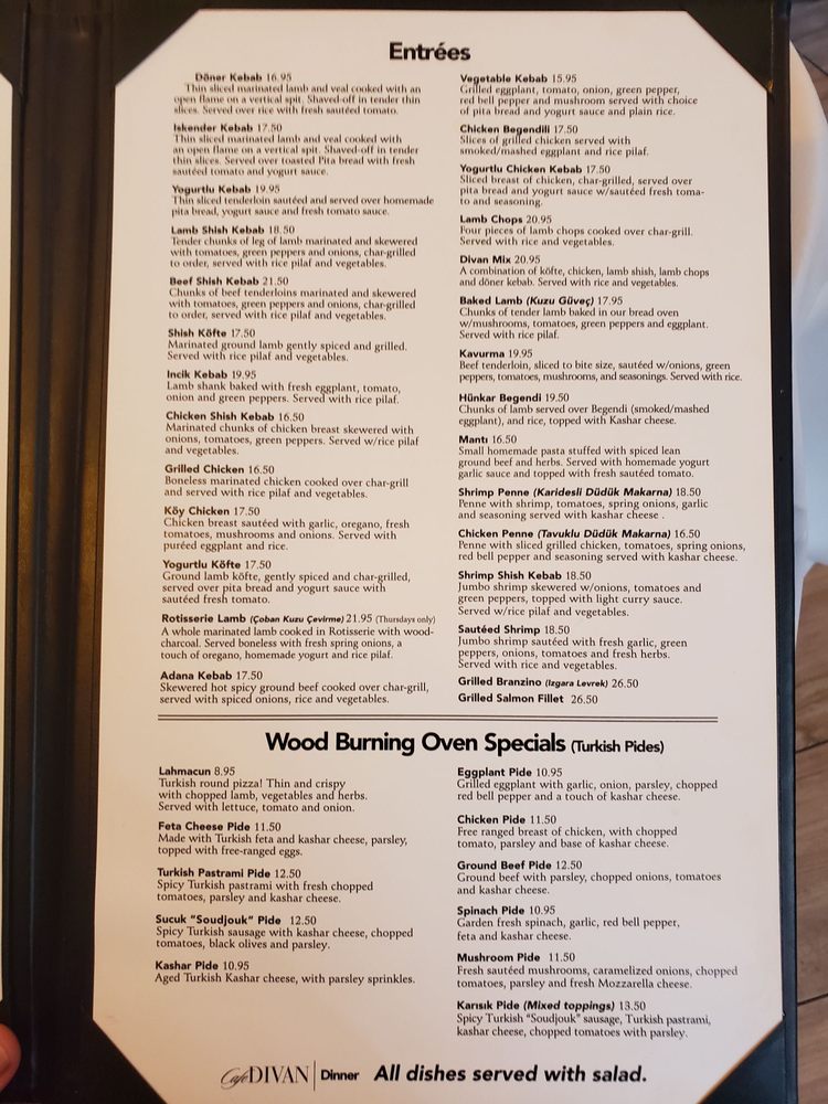 Welcome to Café Divan, an inviting halal eatery located in the heart of Georgetown, Washington, DC. Known for its authentic Turkish cuisine, the menu features an array of options perfect for both lunch and dinner. Start your meal with delightful appetizers like Dolma or crispy Sigara Borek, showcasing fresh ingredients and traditional flavors.